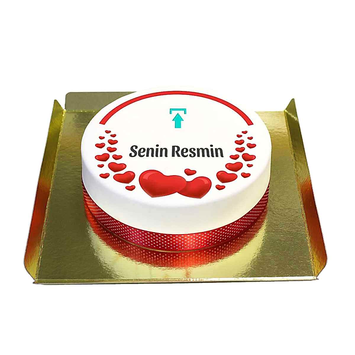 Kırmızı Kalpli Senin Resimli Pastan
